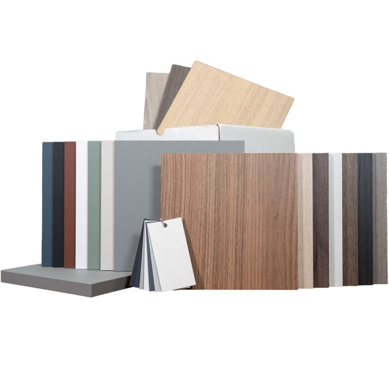 Each kit contains (17) 8×8″ Sample Chips, (1) Premium Fenix Sample Chain, and (1) Edgebanded Sample Block